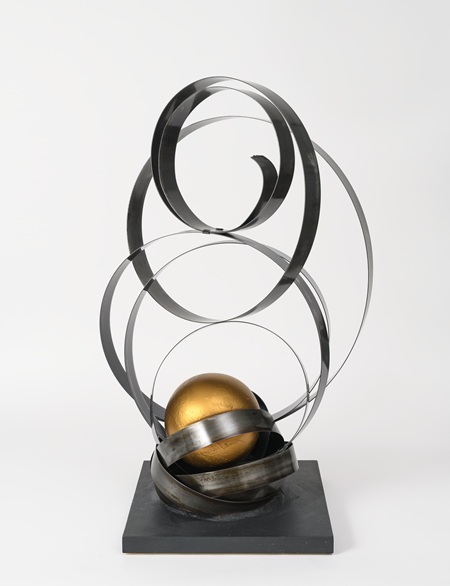 Paolo Di Nozzi - “Ius Soli”, 2018, acciaio e cemento, gomma e legno, cm. 79h x51×36